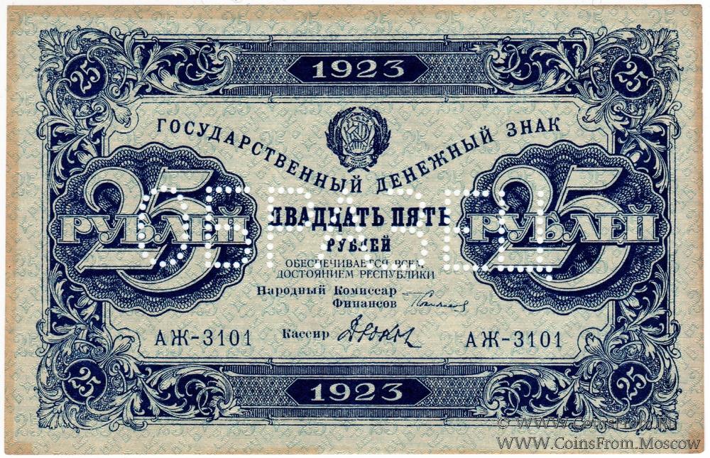 Государственный денежный знак РСФСР 25 рублей образца 1923 г.