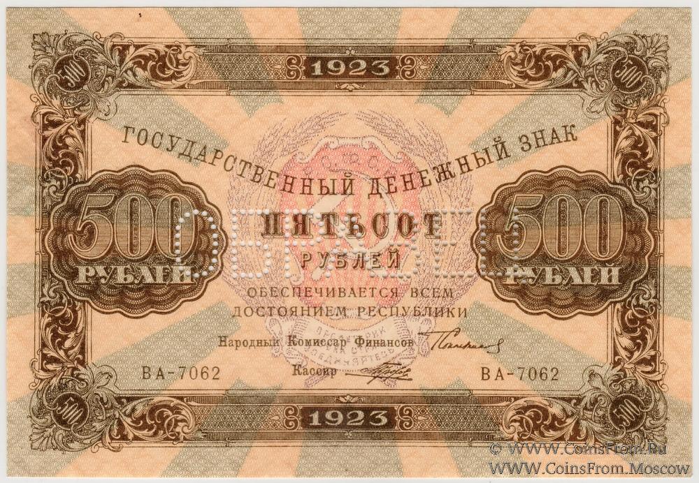 Государственный денежный знак РСФСР 500 рублей образца 1923 г.