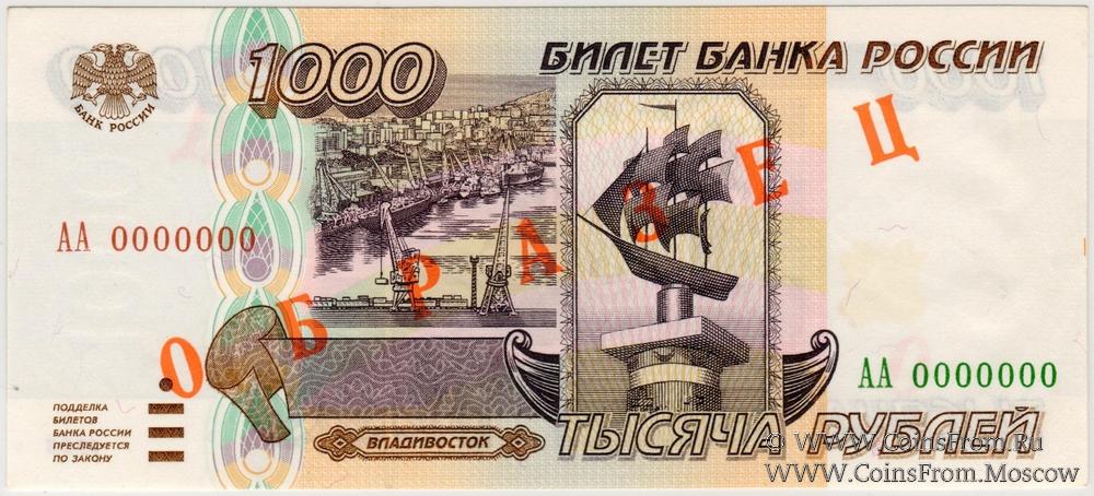 Водяной знак - памятник русскому паруснику "Манчжур" (на широком купонном поле), номинал "1000" (на узком купонном поле).