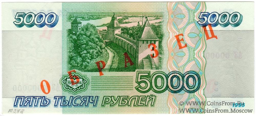 Водяной знак - Софийский собор Новгорода (на широком купонном поле), номинал "5000" (на узком купонном поле).