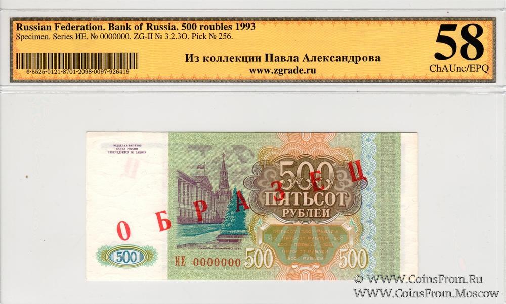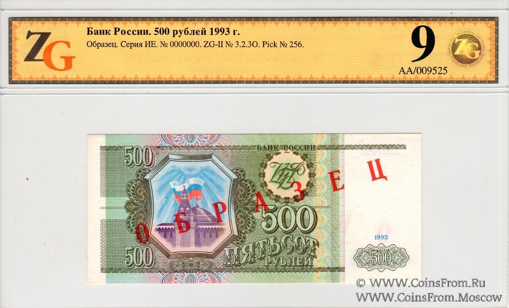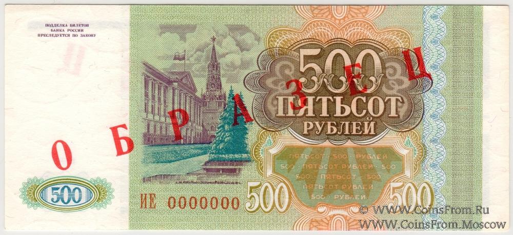 Билет Банка России образца 1993 г. Диагональная надпечатка красного цвета "ОБРАЗЕЦ" на аверсе и реверсе. Водяной знак - большие звезды между волнистых линий. Центральный Банк России. ГОЗНАК.
