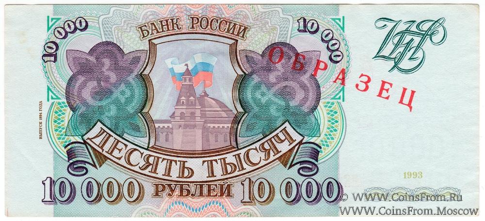 Водяной знак на купонной части банкноты - Сенатская башня Московского Кремля, под башней номинал "10000". Голубоватая бумага.