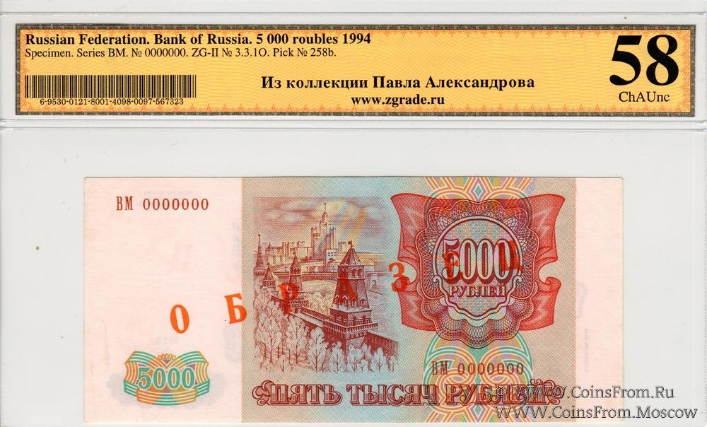 ОБРАЗЕЦ: диагональная надпечатка красного цвета "ОБРАЗЕЦ" на аверсе и реверсе.