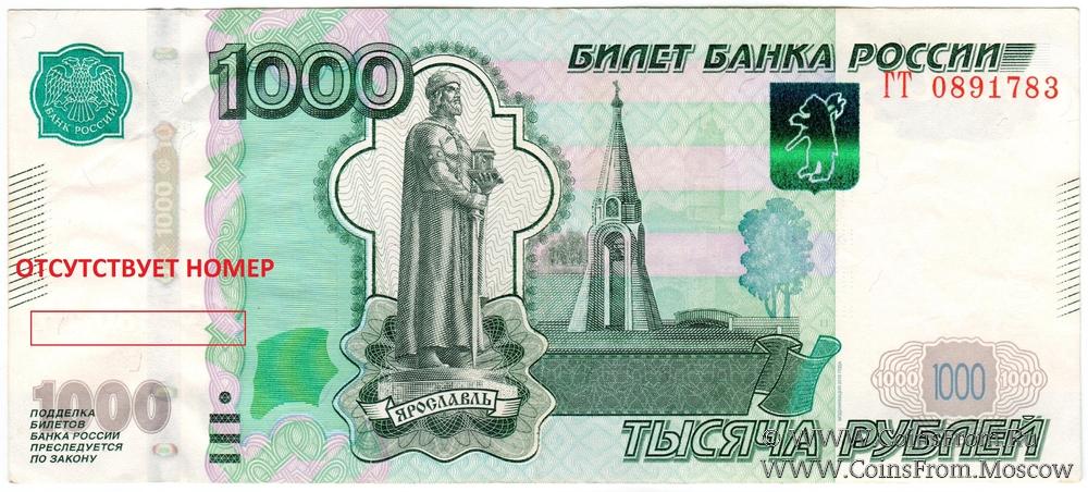 1.000 рублей 1997 (2010) г. БРАК
