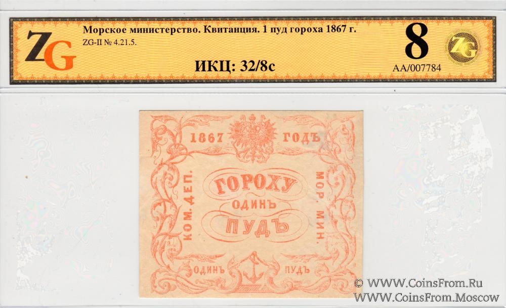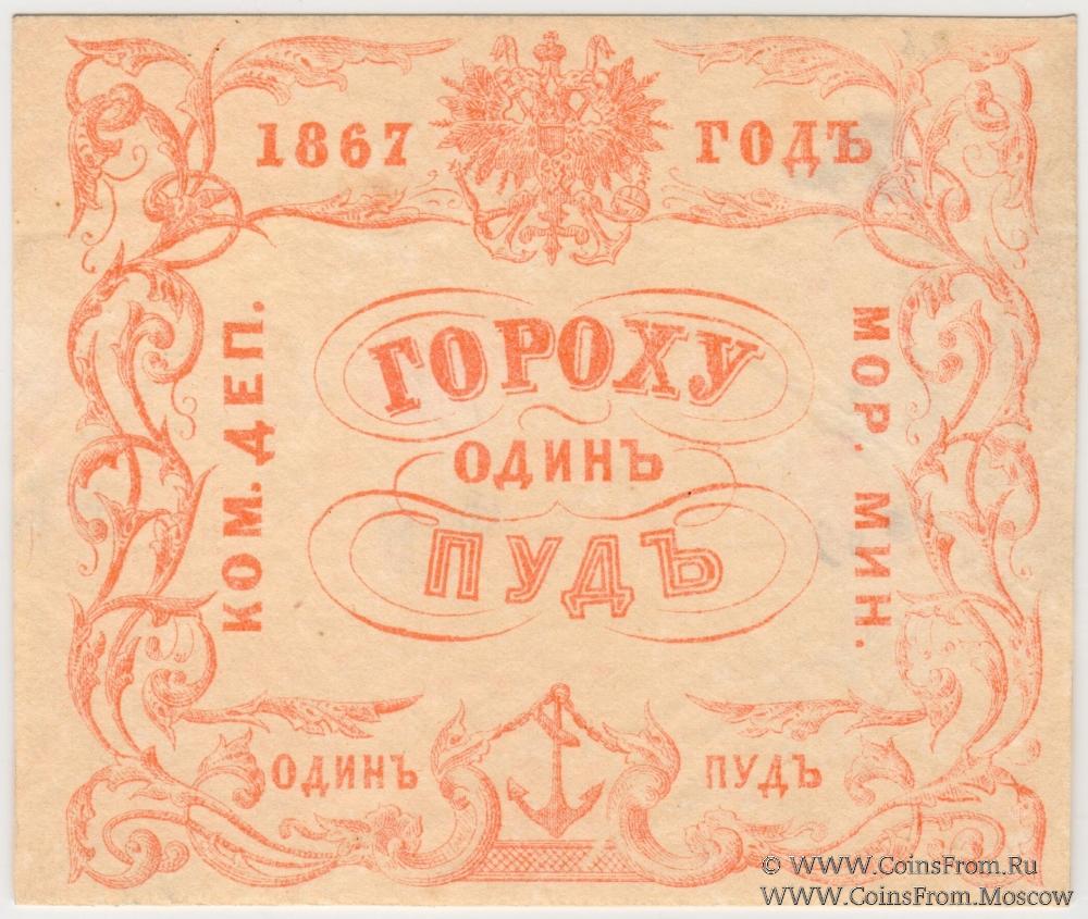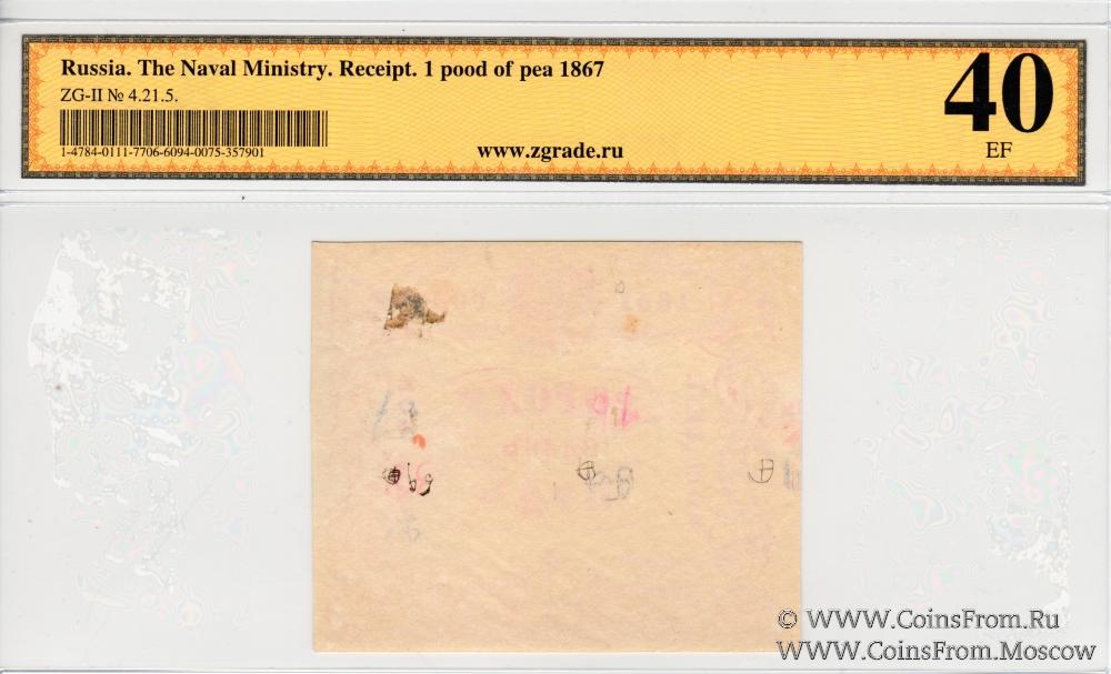 В середине XIX века по указанию морского министра коммерческим департаментом морского министерства производился выпуск квитанций для безналичной оплаты продовольствия, необходимого для экипажей морских судов. Оплата квитанций поставщику производилась при предъявлении в коммерческом департаменте морского министерства. Встречаются довольно редко.