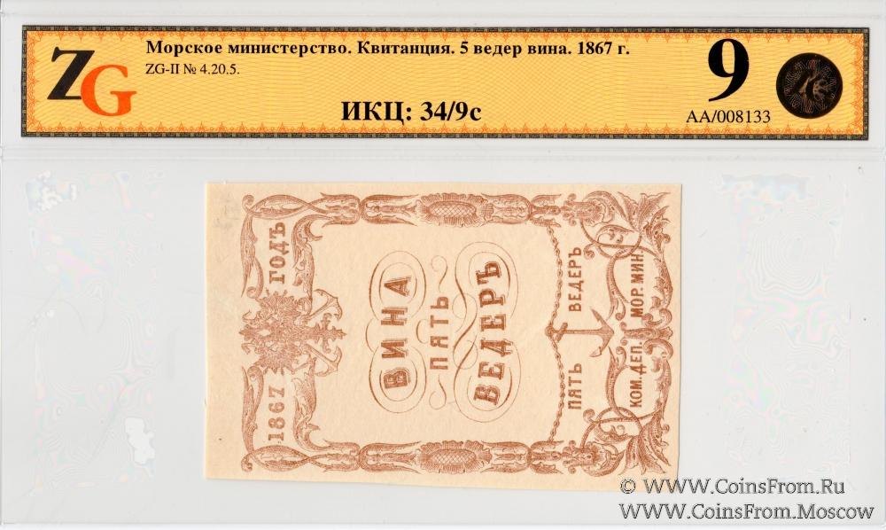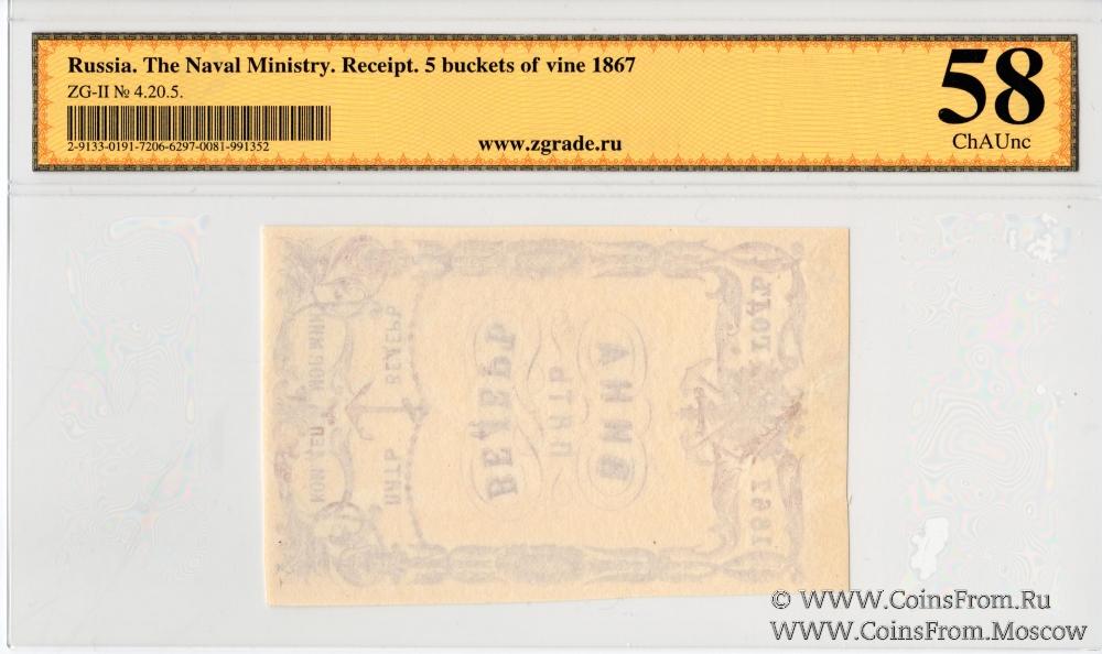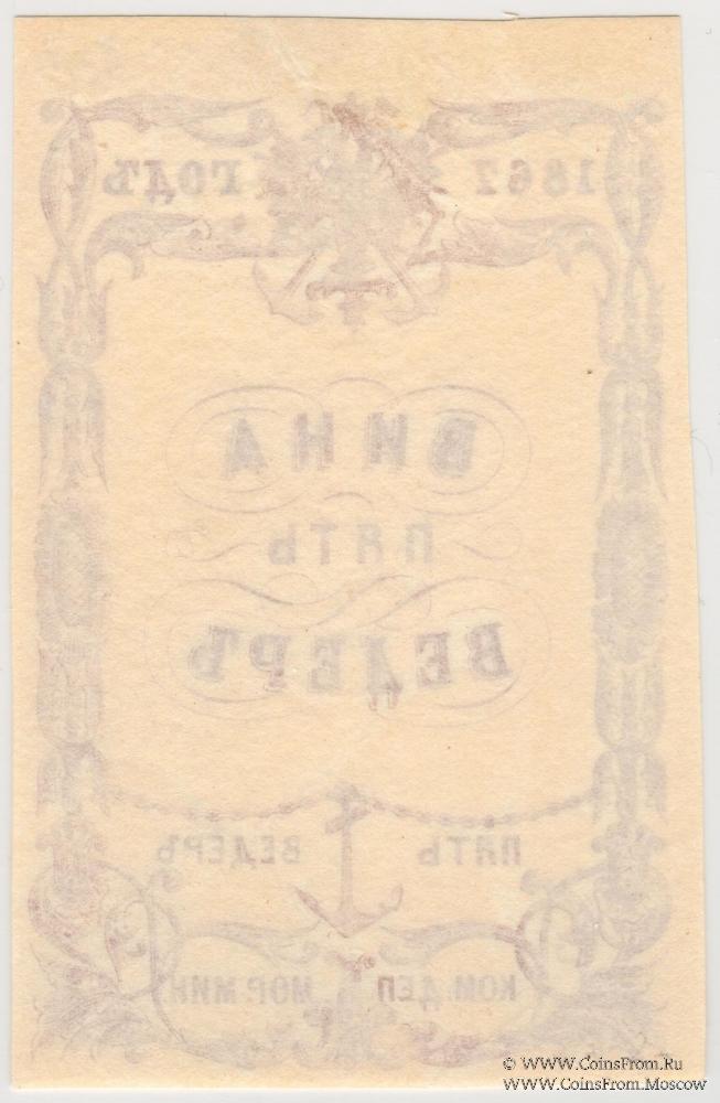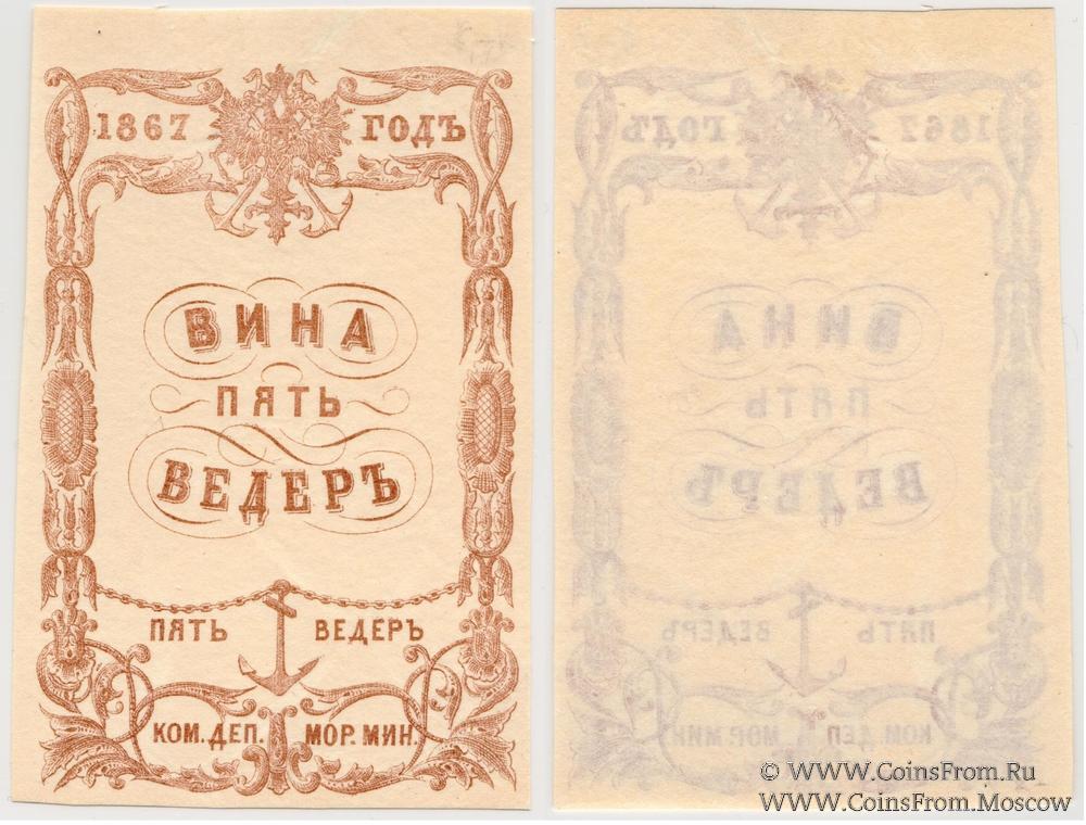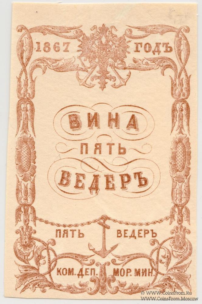 В середине XIX века по указанию морского министра коммерческим департаментом морского министерства производился выпуск квитанций для безналичной оплаты продовольствия, необходимого для экипажей морских судов. Оплата квитанций поставщику производилась при предъявлении в коммерческом департаменте морского министерства. Встречаются довольно редко.
