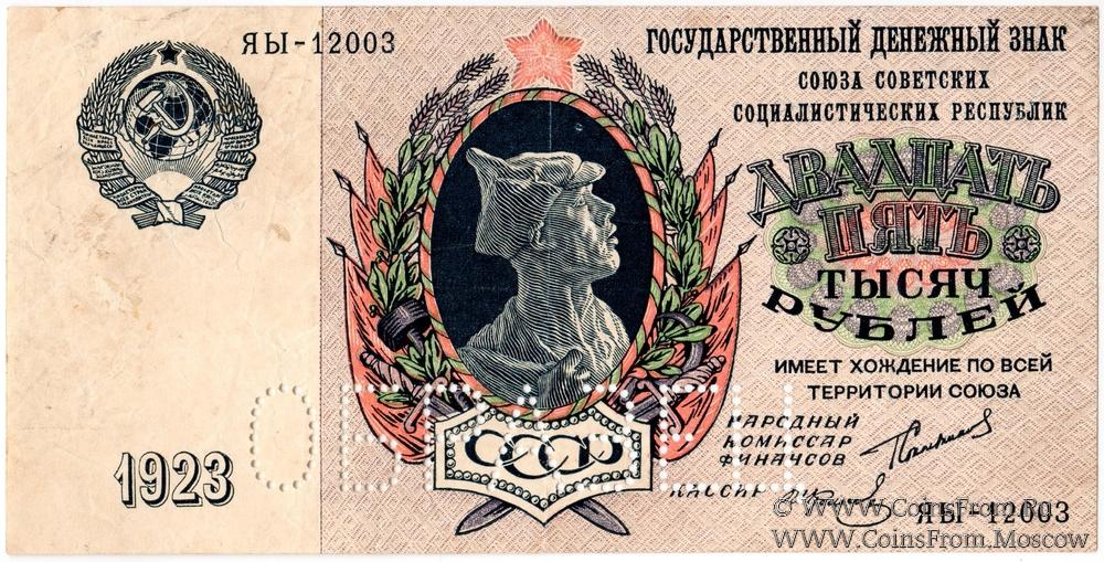 Государственный денежный знак СССР 25.000 рублей образца 1923 г.