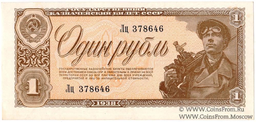 Государственный Казначейский Билет СССР образца 1938 г. Формат серии Хх. Длина номера 15 мм. Государственный Банк СССР.