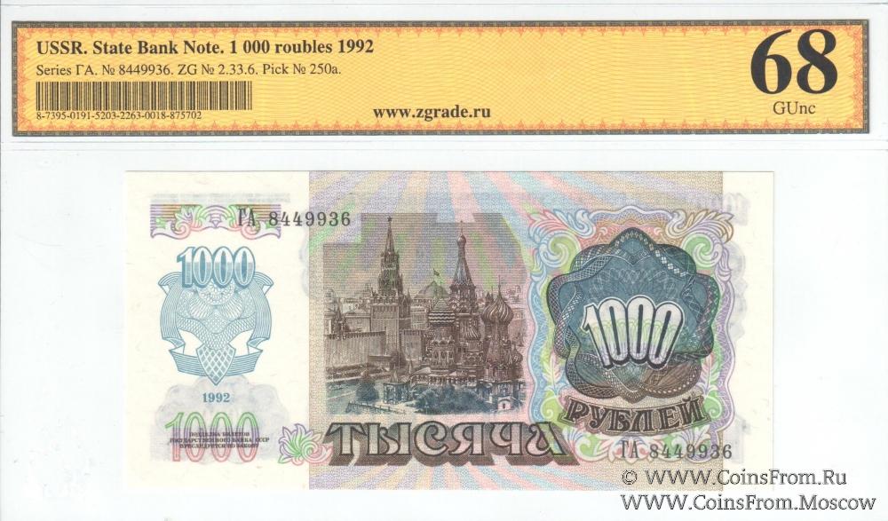 Билет Государственного Банка СССР образца 1992 г. (модифицированный выпуск 1991 г.). Серия ГА. Водяной знак - "Звездочки". Государственный Банк СССР. ГОЗНАК