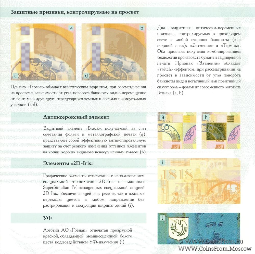 Тестовая банкнота размещена в красочном буклете с описанием технологии печати и исторической информации о производителе.