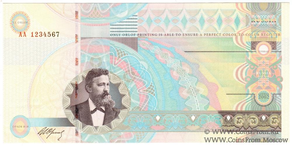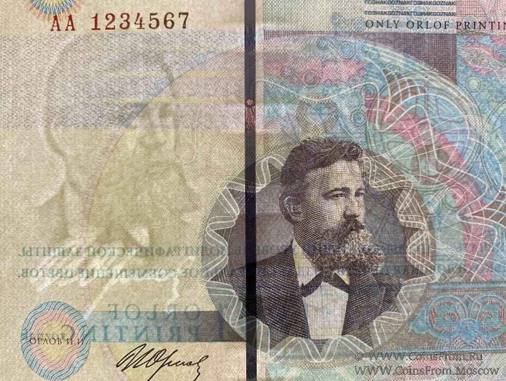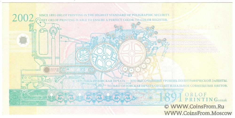 Надпись на реверсе: "С 1891 ГОДА ОРЛОВСКАЯ ПЕЧАТЬ - ЭТО ВЫСОЧАЙШИЙ УРОВЕНЬ ПОЛИГРАФИЧЕСКОЙ ЗАЩИТЫ. ТОЛЬКО ОРЛОВСКАЯ ПЕЧАТЬ СОЗДАЕТ ИДЕАЛЬНОЕ СОВМЕЩЕНИЕ ЦВЕТОВ".