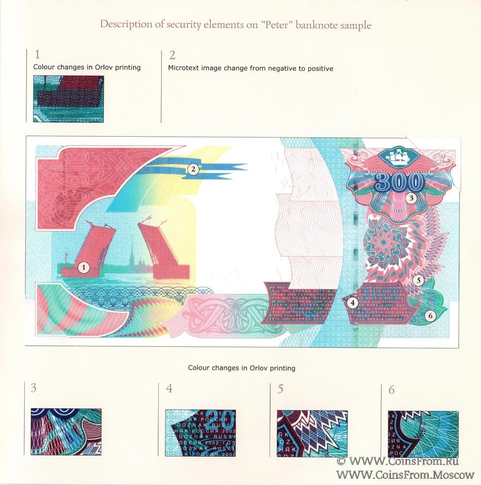 Буклет с презентационной банкнотой "300 лет Санкт-Петербургу". Вариант 2. 2002 г. ГОЗНАК.