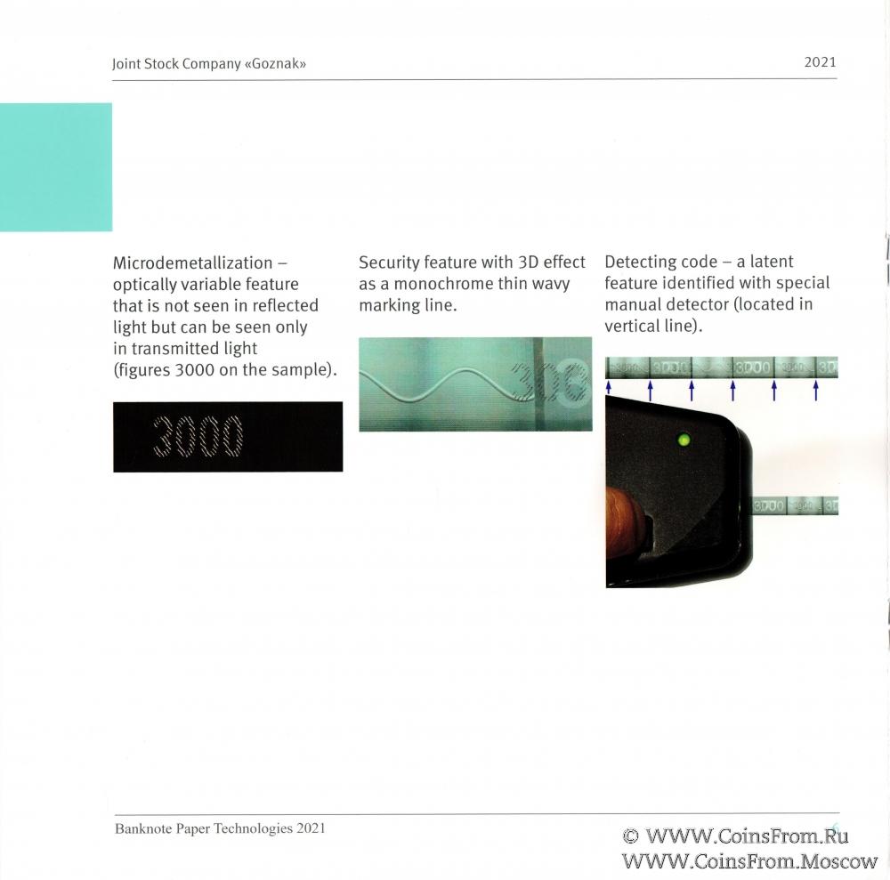 Буклет "Banknote Paper Technologies 2021". Заготовки банкнот с примерами водяных знаков, защитных нитей и волокон (2 шт). На английском языке. ГОЗНАК.