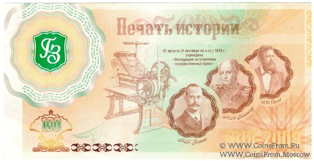Предприятие ГОЗНАК было основано распоряжением императора Александра I 21 августа (2 сентября) 1818 года в Санкт-Петербурге как Экспедиция заготовления государственных бумаг в составе Министерства финансов.