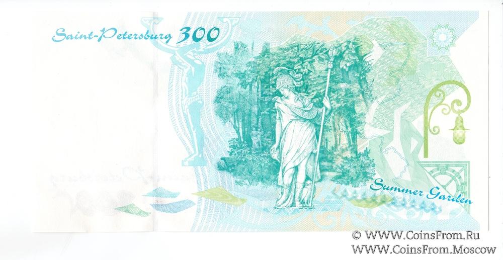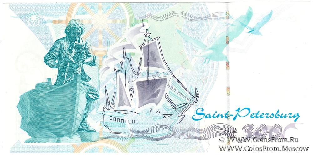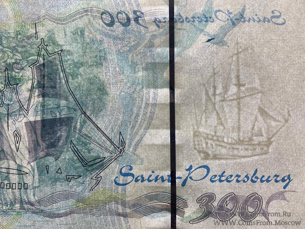 Презентационная банкнота "300 лет Санкт-Петербурга". Водяной знак - "корабль". ГОЗНАК.