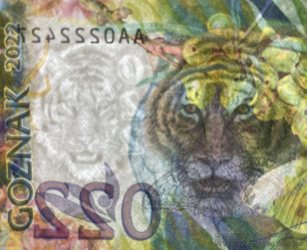Тестовые банкноты в буклете. ГОЗНАК 2022 г. Водяной знак - "тигр". Заготовки банкнот с новейшими техническими решениями печати и дизайна.