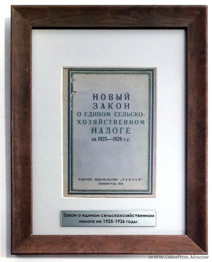 Брошюра 1925 г. Новый закон о едином сельскохозяйственном налоге на 1925-1926 г.г. Подлинный старинный документ. Размер рамки 24х31,5 см.