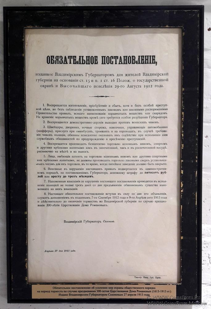 Обязательное постановление от 27.04.1913 г. по Владимирской области о государственной охране.