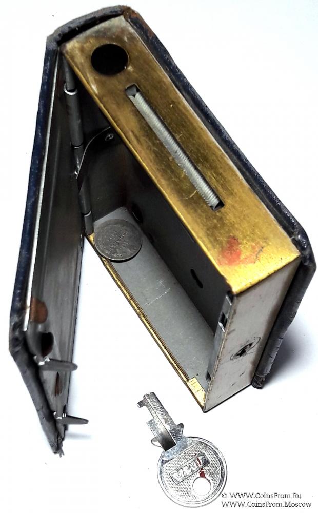 В представленной копилке-книжке два отверстия. Один - для монет, второй - для купюр. Причем отверстие для купюр очень маленькое, то есть перед тем как запихнуть в копилку, купюру надо было скручивать в тоненькую трубочку для большей вместительности копилки.