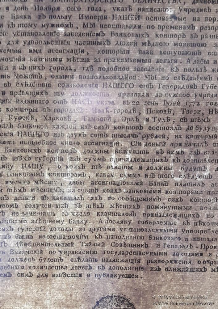 Указ Её Императорского Величества Самодержицы Всероссийской об учреждении банковских контор в городах: Псков, Нежин, Орёл, Харьков, Киев, Тула, Тамбов, Курск.