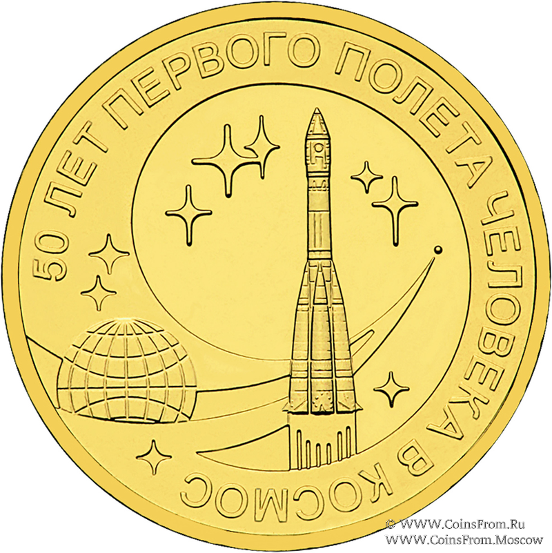 10 рублей 2011 г (50 лет первого полета человека в космос)