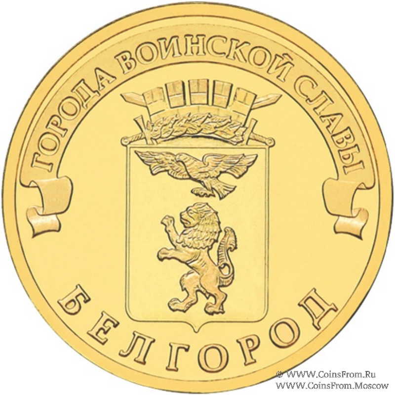 ГВС Белгород. Чеканка: Санкт-Петербургский монетный двор (СПМД). Оформление гурта: 6 участков по 5 рифов и 6 участков по 7 рифов, чередующихся 12 гладкими участками.