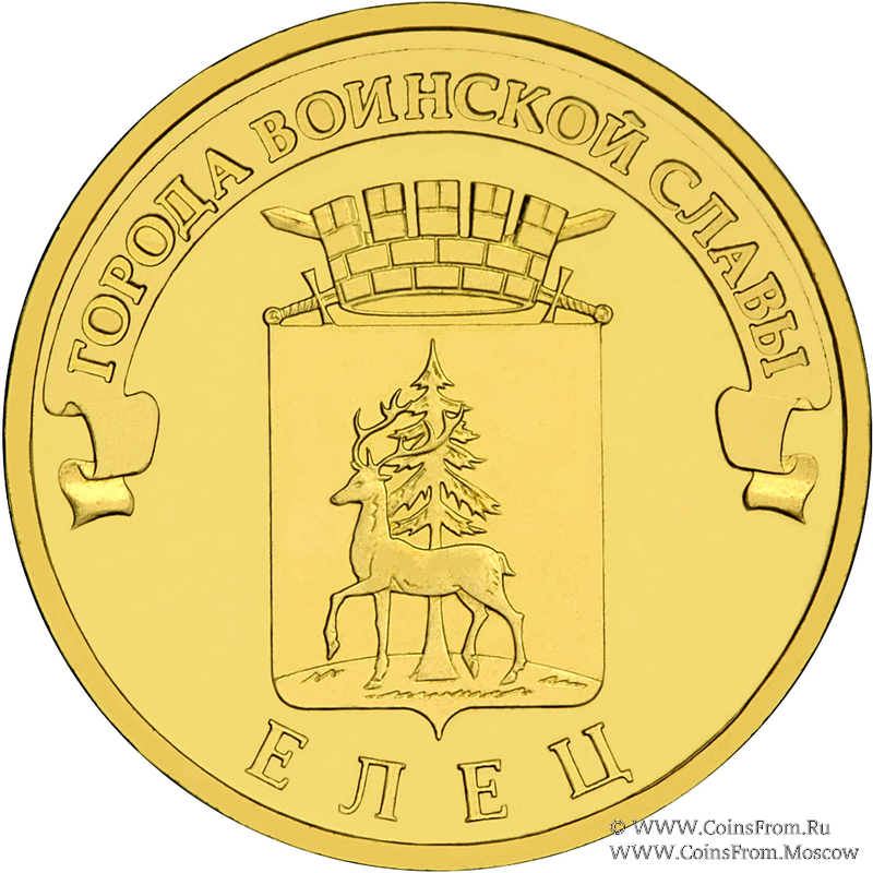 ГВС Елец. Чеканка: Санкт-Петербургский монетный двор (СПМД). Оформление гурта: 6 участков по 5 рифов и 6 участков по 7 рифов, чередующихся 12 гладкими участками.