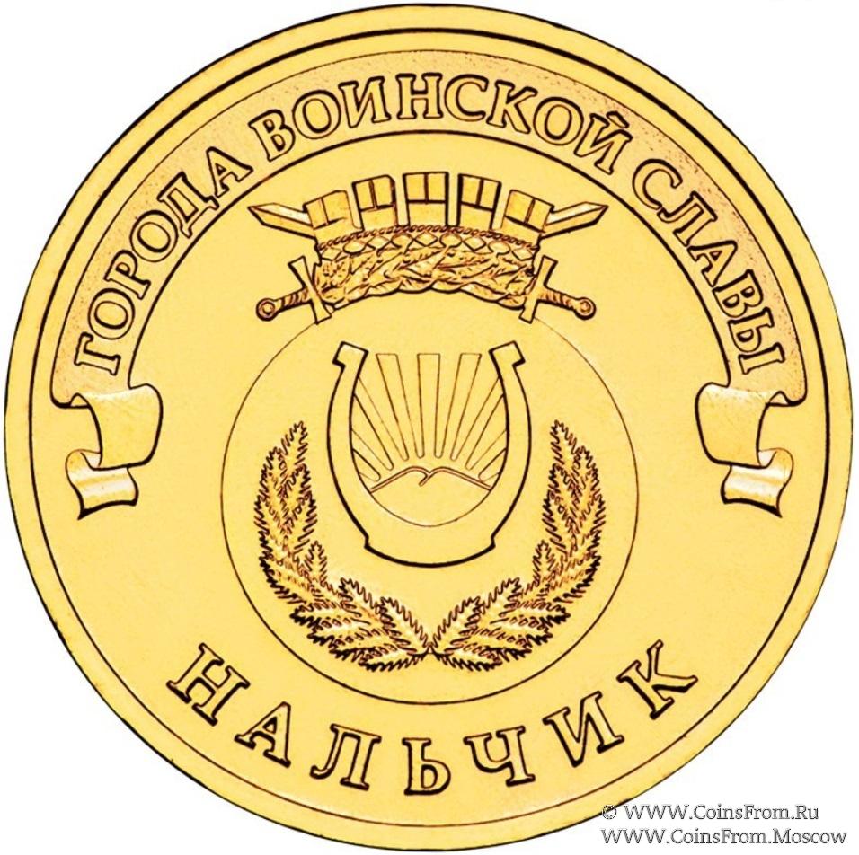 ГВС Нальчик. Чеканка: Санкт-Петербургский монетный двор (СПМД). Оформление гурта: 6 участков по 5 рифов и 6 участков по 7 рифов, чередующихся 12 гладкими участками.