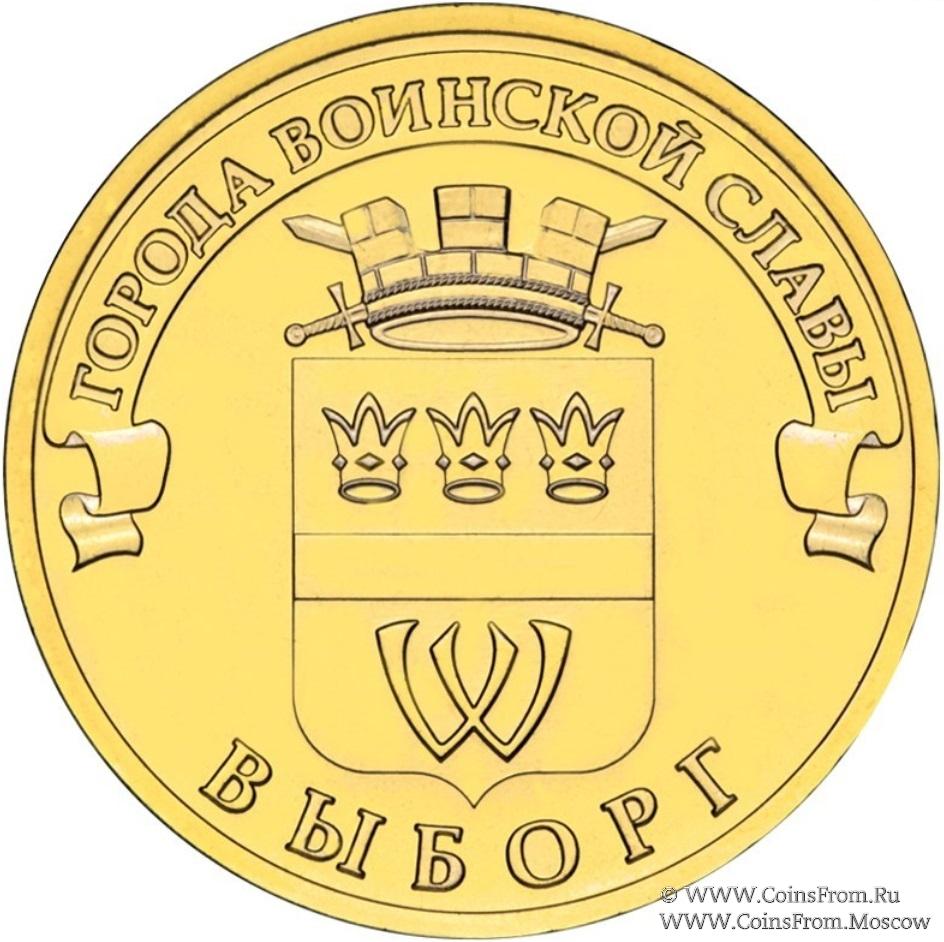 ГВС Выборг. Чеканка: Санкт-Петербургский монетный двор (СПМД). Оформление гурта: 6 участков по 5 рифов и 6 участков по 7 рифов, чередующихся 12 гладкими участками.