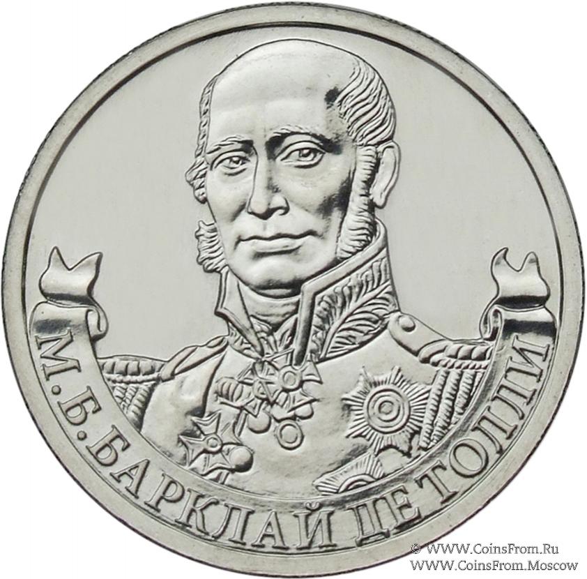 Генерал-фельдмаршал М.Б. Барклай де Толли. Чеканка: Московский монетный двор (ММД).