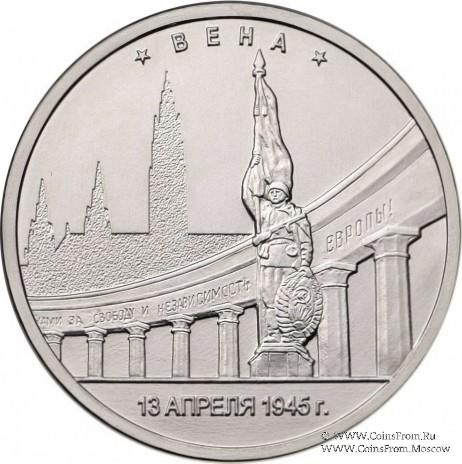 Вена. 13.04.1945 г. Чеканка: Московский монетный двор (ММД). Оформление гурта: 12 участков по 5 рифов каждый.
