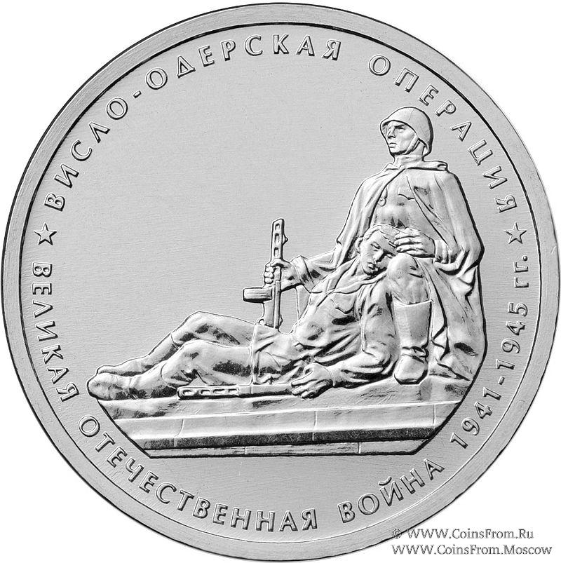 Висло-Одерская операция. Чеканка: Московский монетный двор (ММД). Оформление гурта: 12 участков по 5 рифов.
