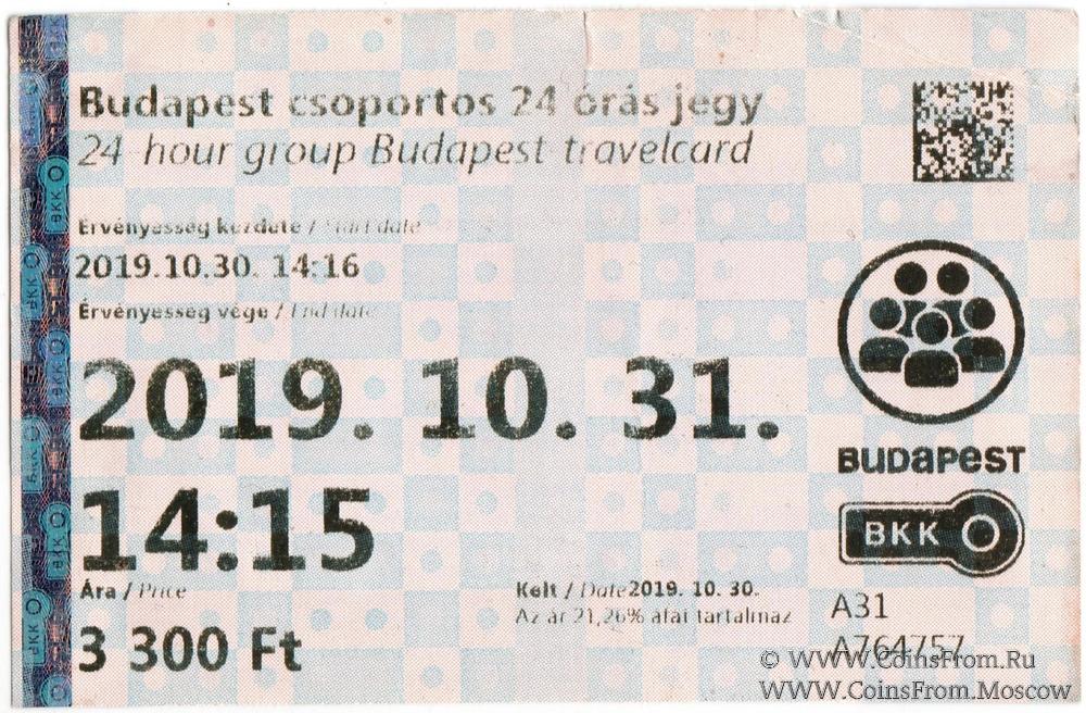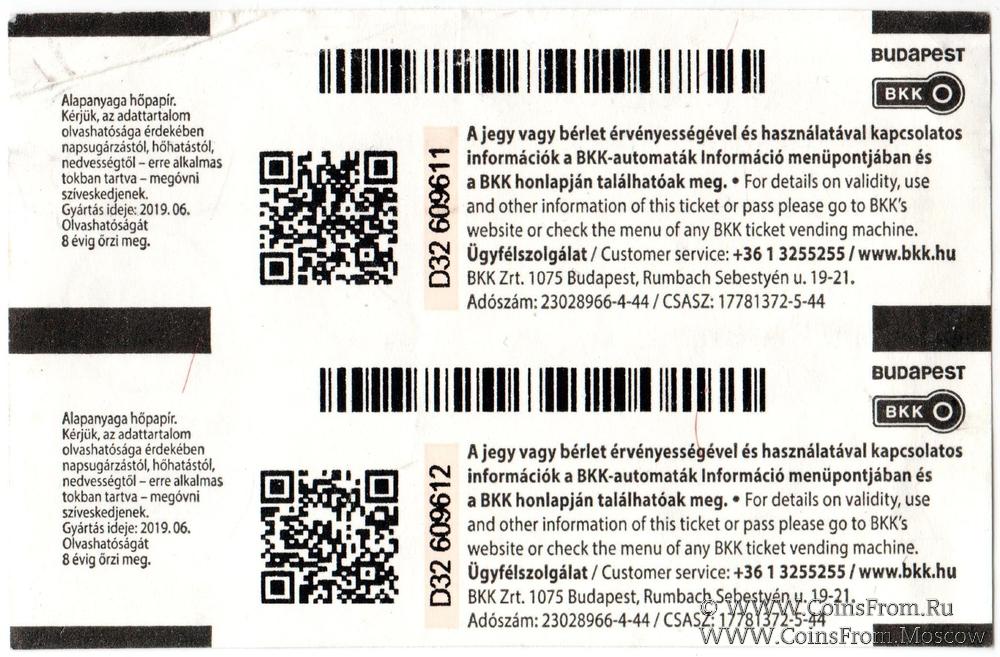 Билет на проезд в транспорте 2019 г. Будапешт (Венгрия)