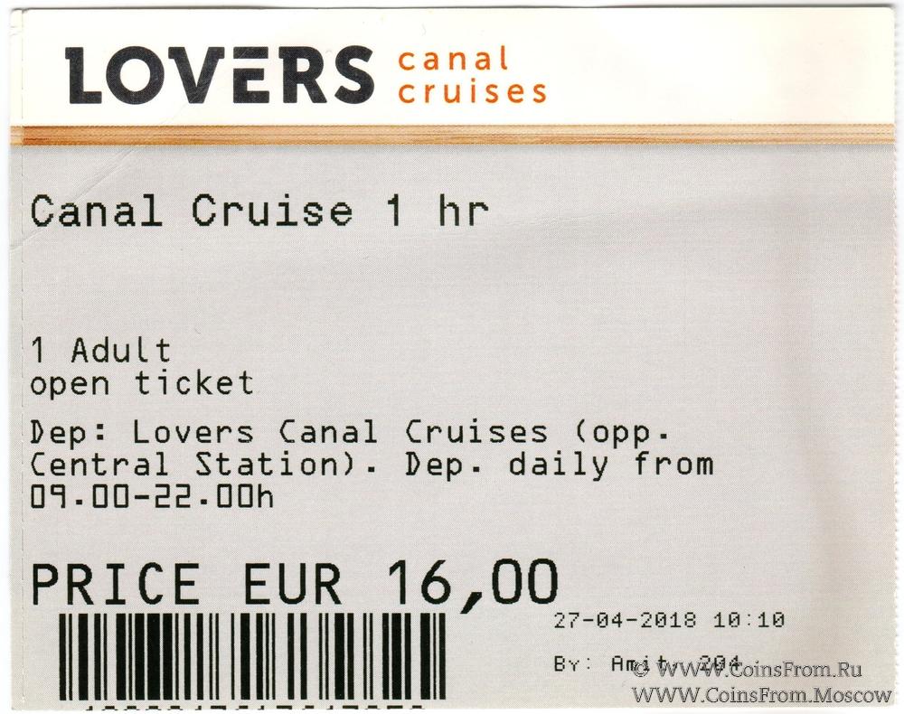 Билет на часовой круиз по поясу каналов Амстердама 2018 г. на одного взрослого. Компания LOVERS Canal Cruises (основана в 1950 году).