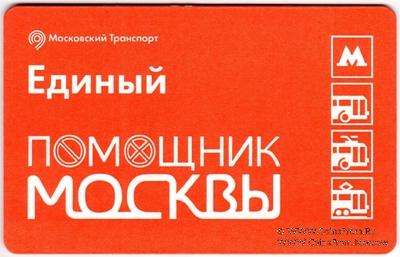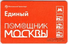 Билет "Единый". Размер: 85,5 * 54 мм. Дизайн: надпись на аверсе "Помощник Москвы", а на реверсе — QR-код для скачивания приложения. Карта...