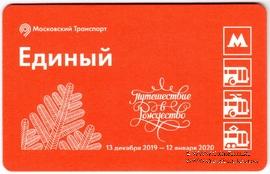 Билет "Единый". Размер: 85,5 * 54 мм. Дизайн: надпись на аверсе "Путешествие в Рождество", а на реверсе — "2020". Карта посвящена празднованию...