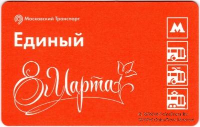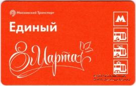 Билет "Единый". Размер: 85,5 * 54 мм. Билет с поздравлением с Международным женским днём 8 марта.