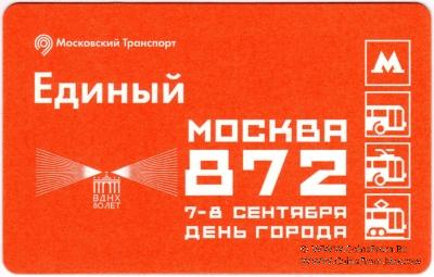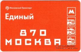 Билет "Единый". Размер: 85,5 * 54 мм. Билет выпущен к празднованию Дня города — 870-летию Москвы.