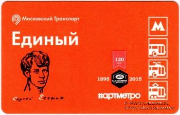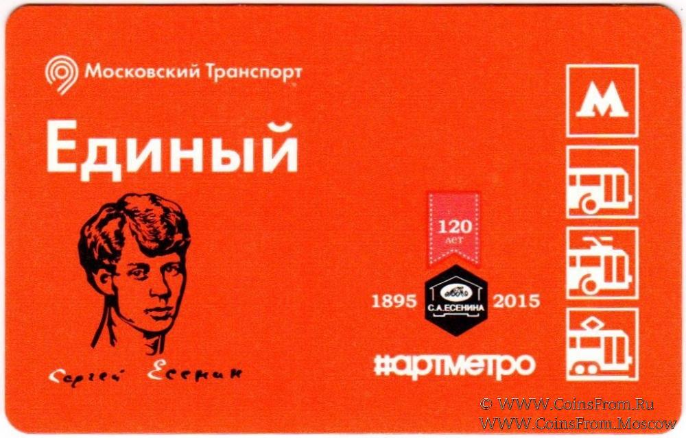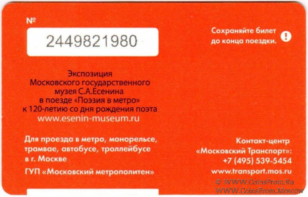 Серия "Библиотеки Москвы" из 13 билетов, посвященная круглым датам и юбилеям поэтов и писателей. Вариант — Сергей Есенин (125 лет).