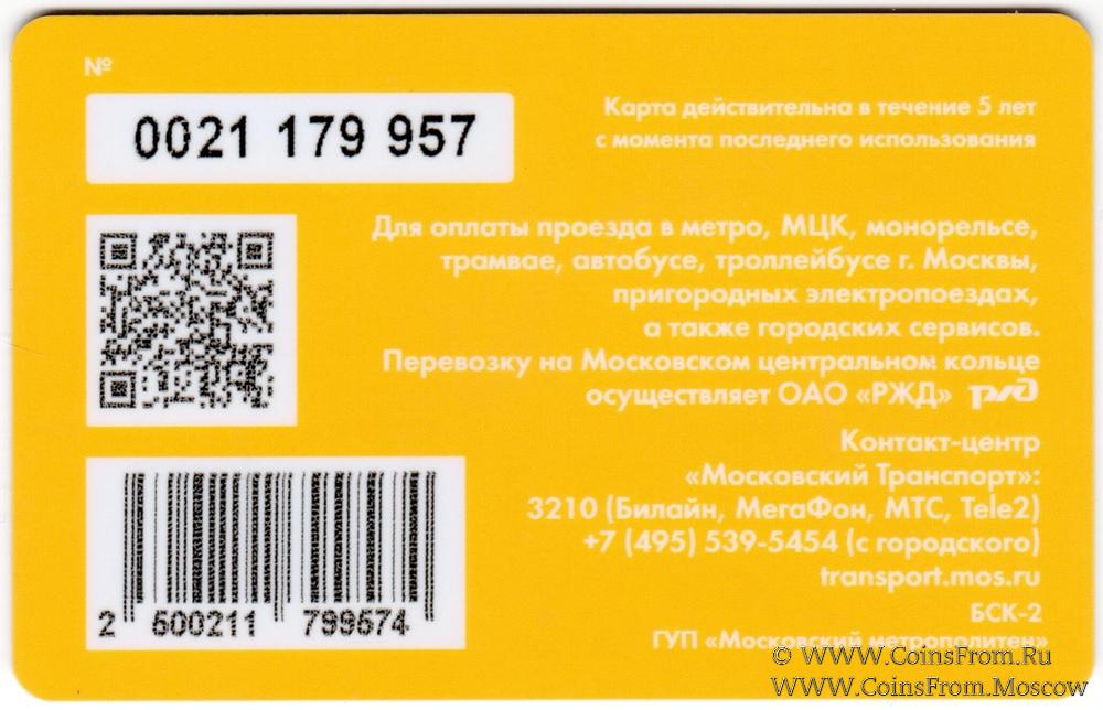 Карта залоговая для проезда в метро, МЦК, монорельсе, трамвае, автобусе, троллейбусе г. Москвы, пригородных электропоездах, а также городских сервисов.