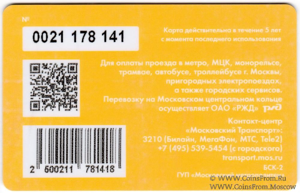 Карта залоговая для проезда в метро, МЦК, монорельсе, трамвае, автобусе, троллейбусе г. Москвы, пригородных электропоездах, а также городских сервисов.