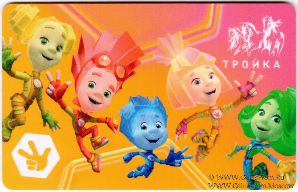 Электронная транспортная карта "Тройка". Размер: 85,5 * 54 мм. Тематическая карта "Тройка" с изображением фиксиков – героев отечественного компьютерного мультипликационного сериала: Шпуля, Файер, Нолик, Симка и Верта.