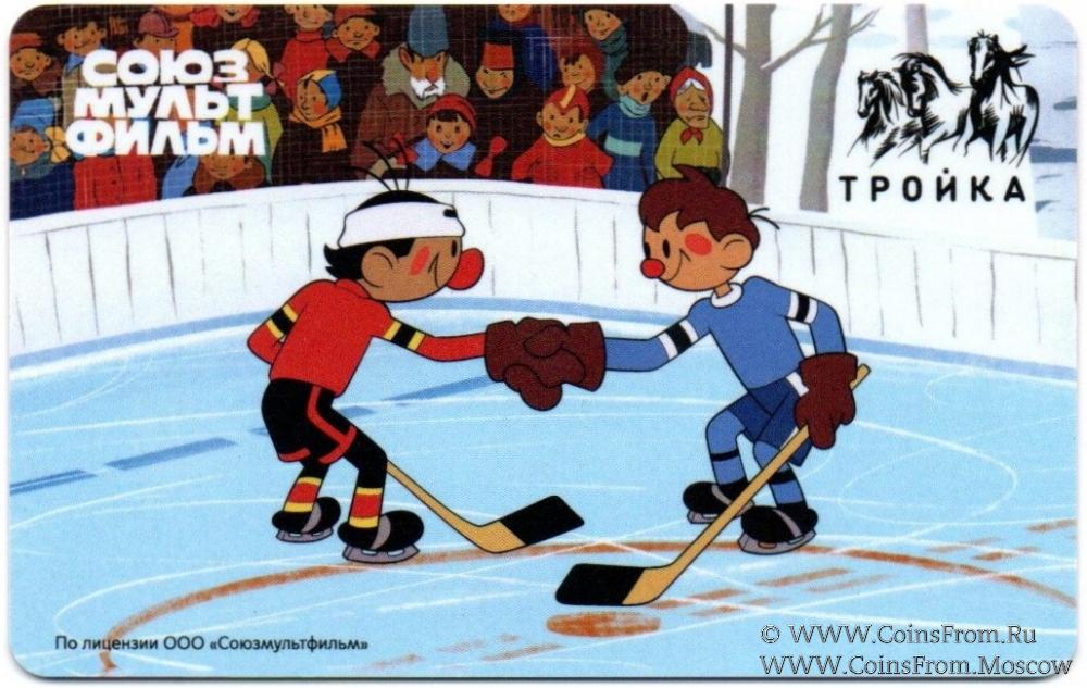 Электронная транспортная карта "Тройка". Размер: 85,5 x 54 мм. Серия из шести карт "Тройка" с изображением персонажей мультфильма "Шайбу! Шайбу!" студии "Союзмультфильм". Вариант 4.
