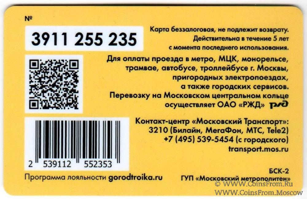 Карта беззалоговая (3911), не подлежит возврату. Для оплаты проезда в метро, МЦК, монорельсе, трамвае, автобусе, троллейбусе г. Москвы, пригородных электропоездах, а также городских сервисов.