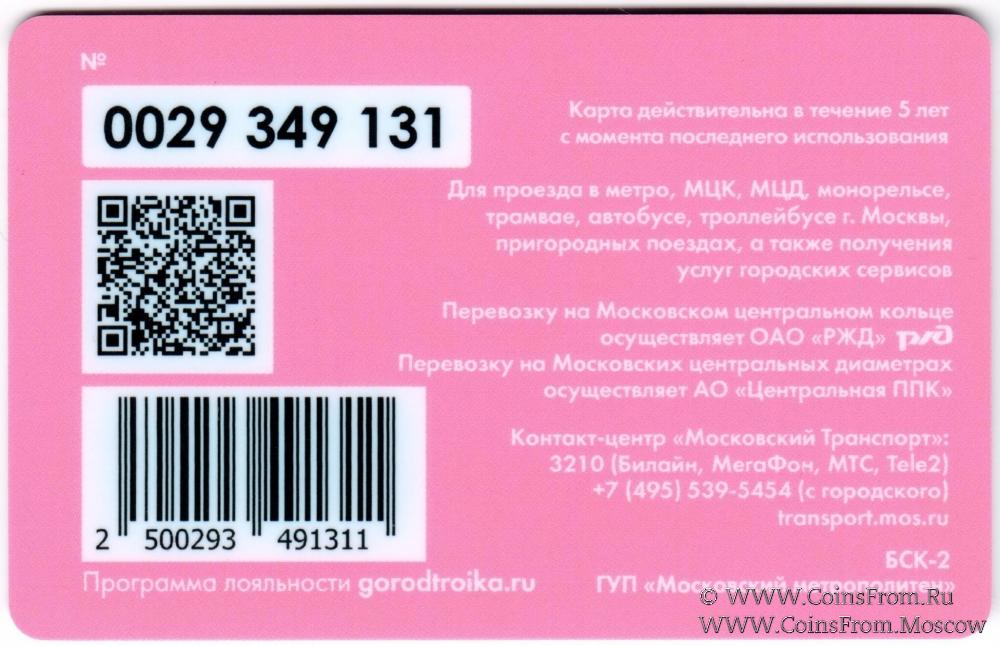 Карта залоговая (0029) действительна в течение 5 лет с момента последнего использования. Для проезда в метро, МЦК, МЦД, монорельсе, трамвае, автобусе, троллейбусе г. Москвы, пригородных поездах, а также получения услуг городских сервисов.