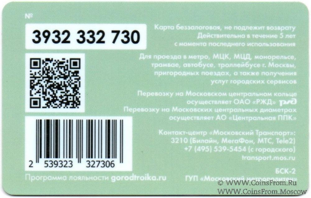 Карта подарочная (3932) беззалоговая, не подлежит возврату. Для проезда в метро, МЦК, МЦД, монорельсе, трамвае, автобусе, троллейбусе г. Москвы, пригородных поездах, а также получения услуг городских сервисов.