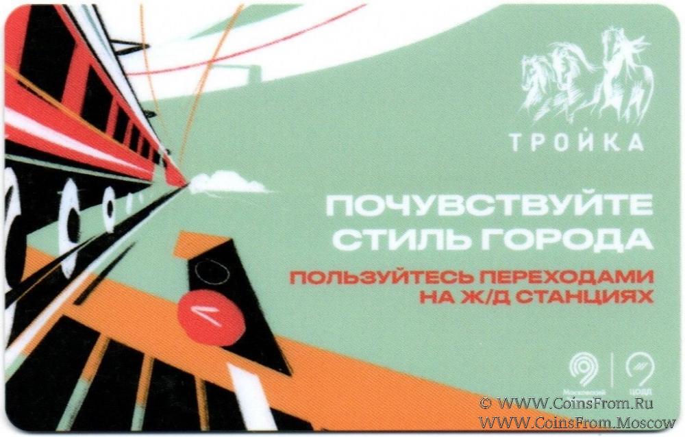 Электронная транспортная карта "Тройка". Размер: 85,5 * 54 мм. Серия из 4-х карт "Почувствуйте стиль города", посвященных правилам безопасного поведения в городе. Вариант 4: "Пользуйтесь переходами на ж/д станциях".