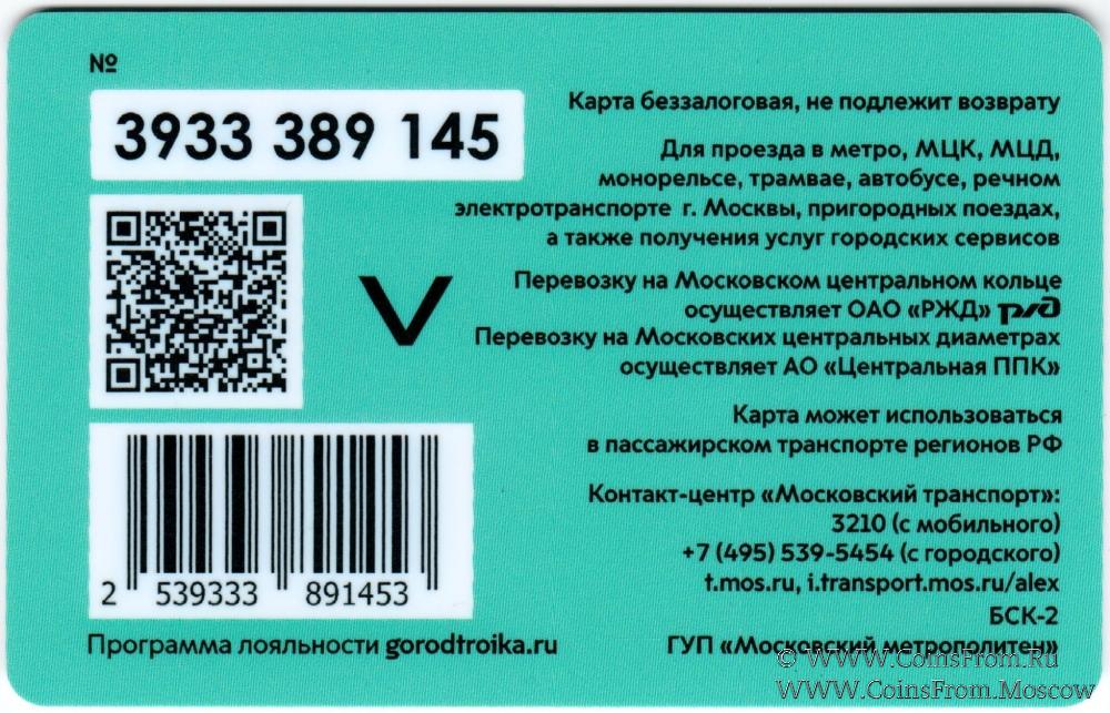 Карта подарочная (3933) беззалоговая, не подлежит возврату. Для проезда в метро, МЦК, МЦД, монорельсе, трамвае, автобусе, речном электротранспорте г. Москвы, пригородных поездах, а также получения услуг городских сервисов.