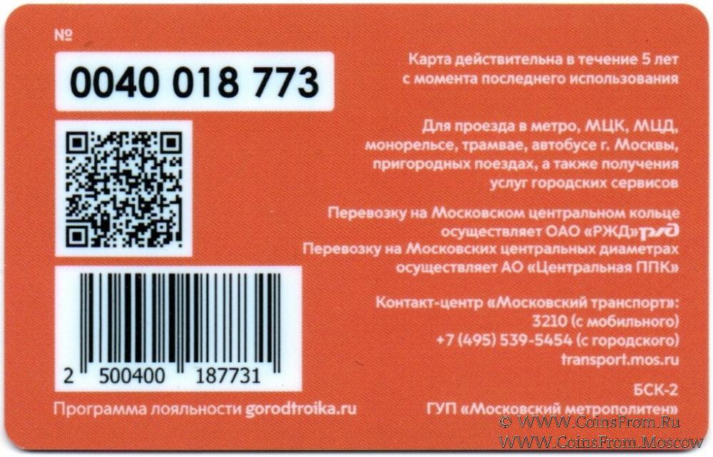 Карта залоговая (0040). Для проезда в метро, МЦК, МЦД, монорельсе, трамвае, автобусе г. Москвы, пригородных поездах, а также получения услуг городских сервисов.
