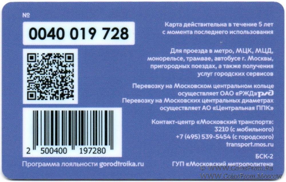 Карта залоговая (0040). Для проезда в метро, МЦК, МЦД, монорельсе, трамвае, автобусе г. Москвы, пригородных поездах, а также получения услуг городских сервисов.